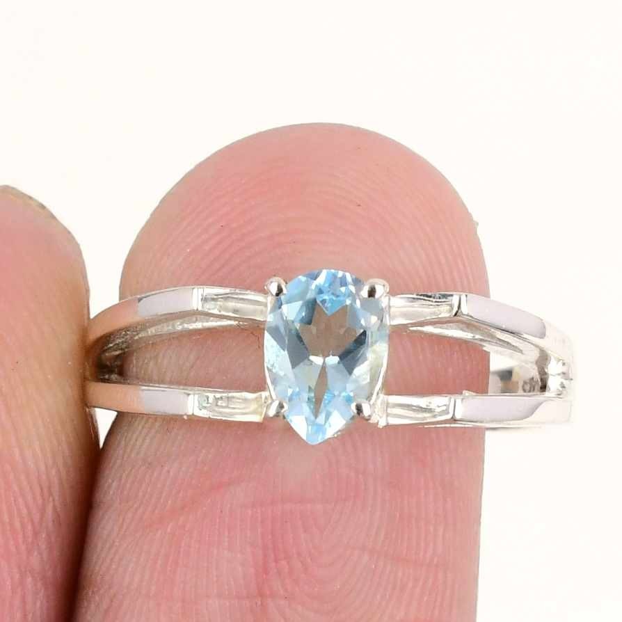 Natural Swiss Blue topaz 925Ā SolidĀ Silver Elegant Cluster Wife New Ring Size 8