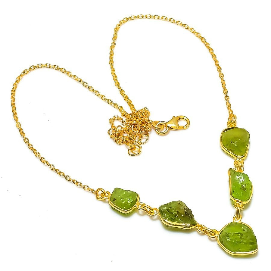 Natural Peridot Solid Silver Chain Birthday Art Deco Daughter Gift Wife Necklace