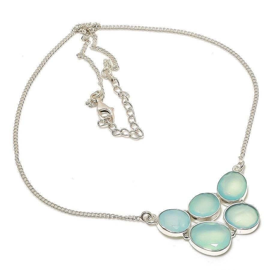 Green Chalcedony Gemstone 925 Silver Chain Birthday Trendy New Necklace Jewelry