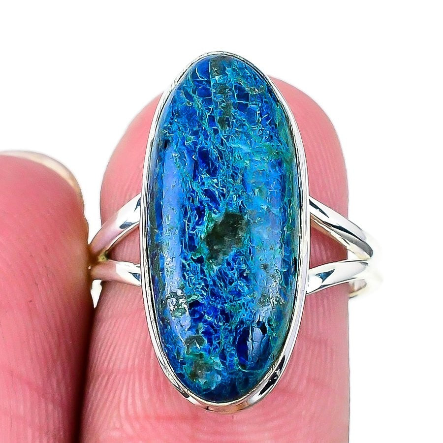 Blue Azurite Stone Sterling Silver Cluster Sister Channel Set Ethnic Ring Size 7
