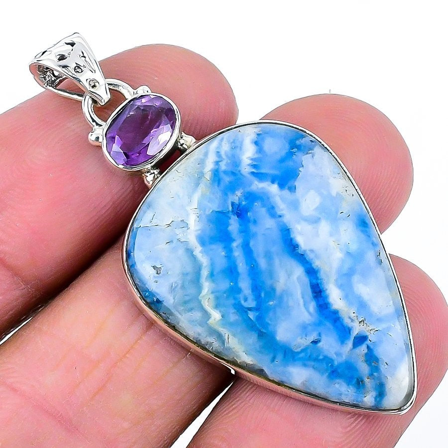 Natural Blue Lace Agate Solid Silver Best Daughters Gift Mother Pendant Jewelry