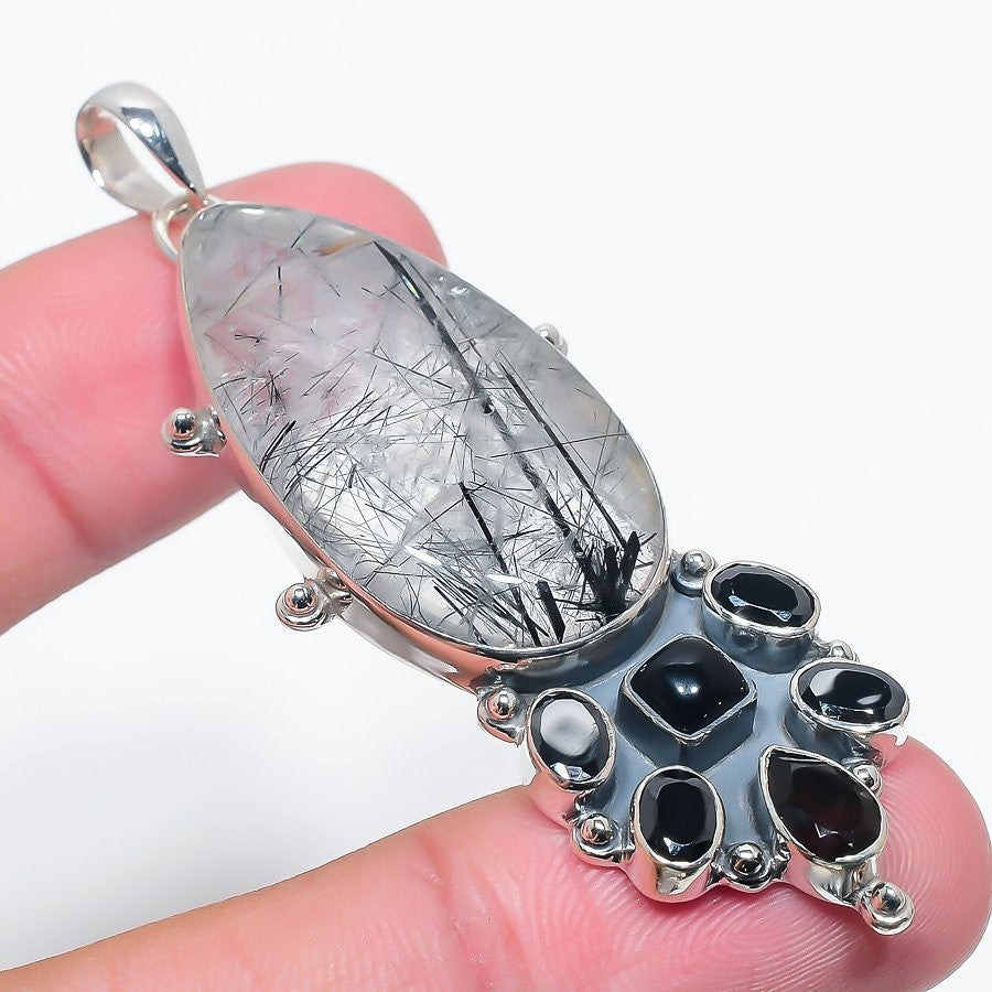 Black Rutile Gemstone Solid Sterling Silver Birthday Daughter Gift Boho Pendant