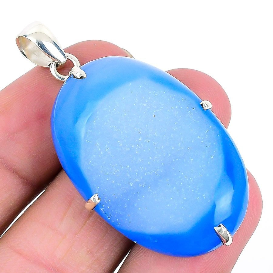 Natural Aqua Druzy Birthday Ethnic Handcrafted Wife Pendant 925 Sterling Silver