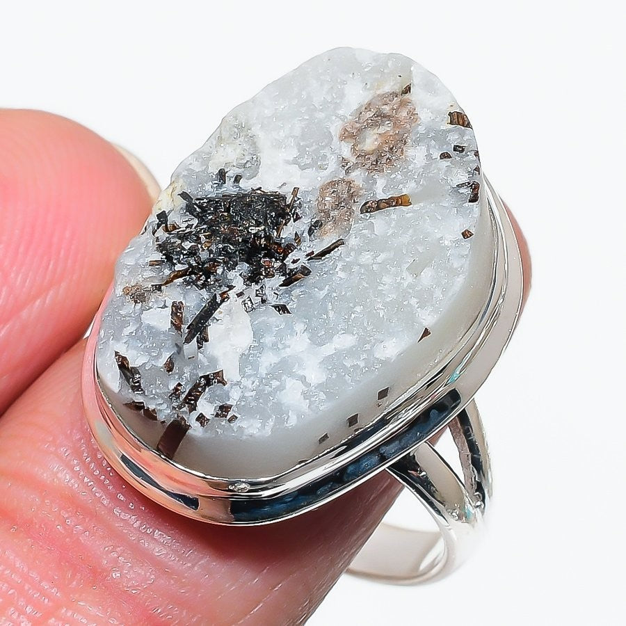 Natural Astrophyllite Sterling Silver Cluster Wife Engagement Boho Ring Size 11