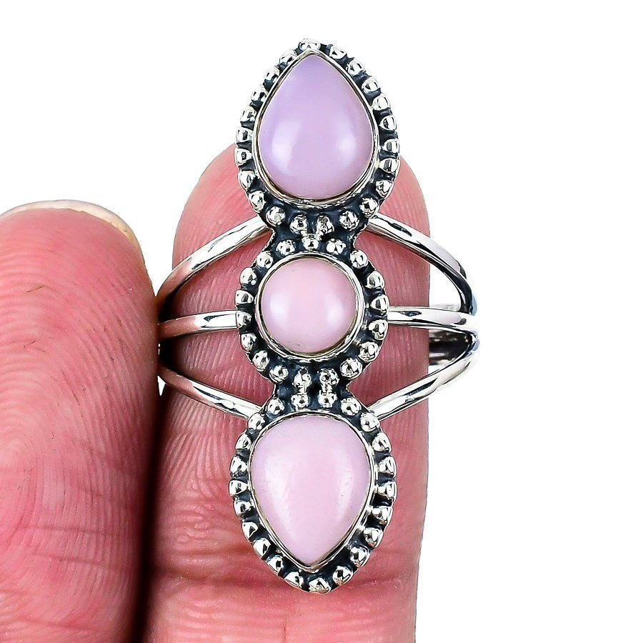 Pink Kunzite Stone Solid Sterling Silver Ethnic Cluster Channel Set Ring Jewelry