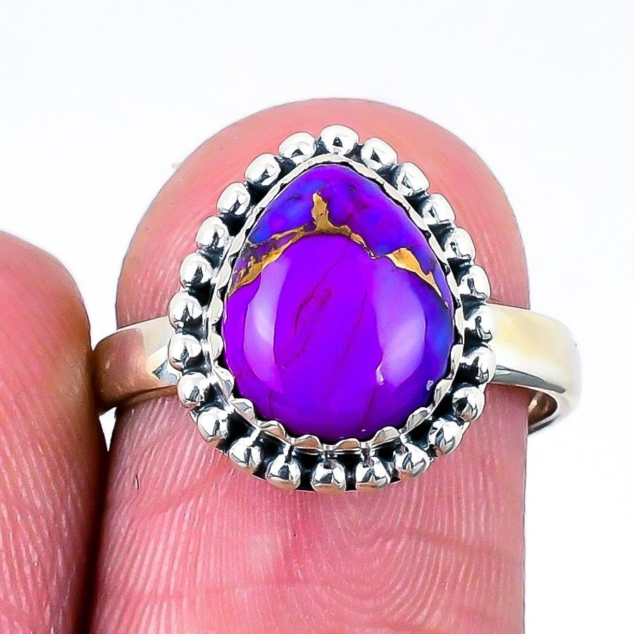 Copper Purple Turquoise Gemstone 925 Silver Band Anniversary Unique Ring Jewelry