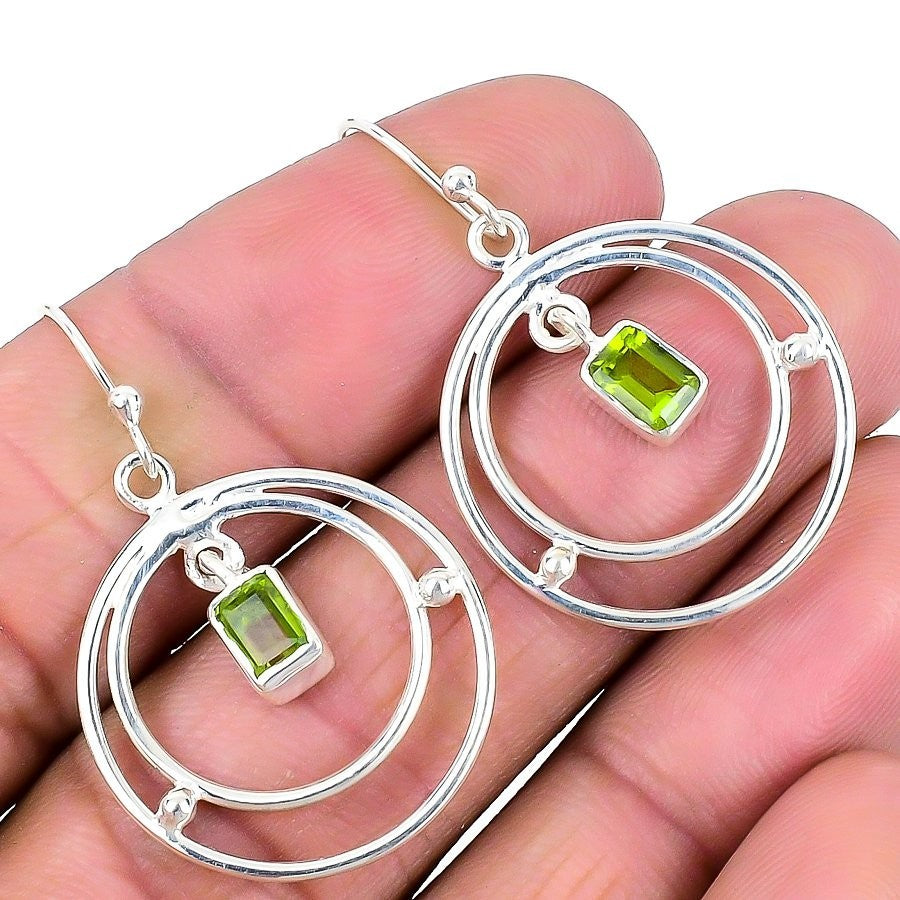 Natural Peridot Birthday Hook August Dangle Drop Boho Earrings 925Ā SolidĀ Silver