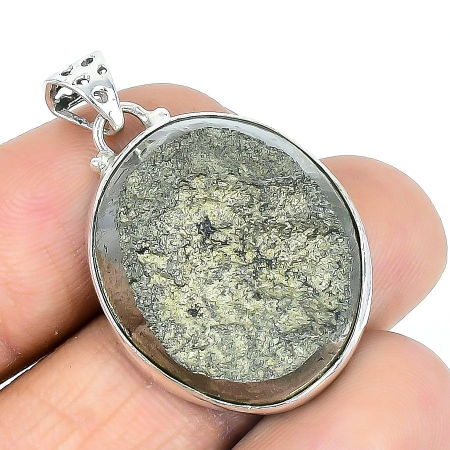 Pyrite Druzy Stone 925Ā SolidĀ Silver Daughter Artisan Handcrafted Wedding Pendant