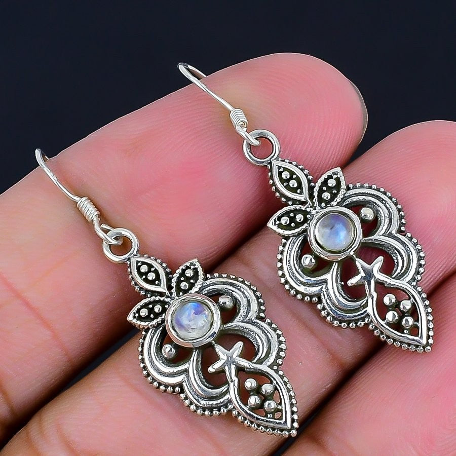 Moonstone Stone 925 Silver Bezel Mother Drop Wedding June Hook Earrings Jewelry