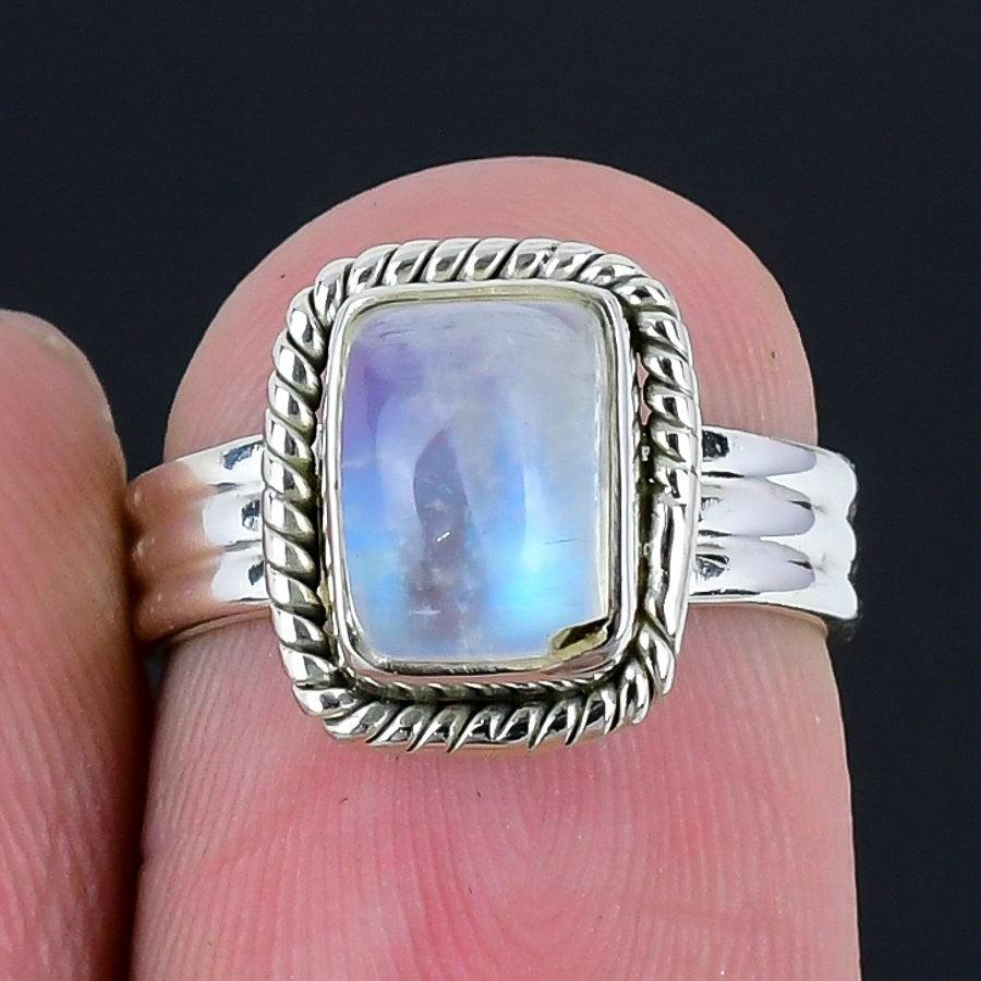 Moonstone Gemstone 925Ā SolidĀ Silver Statement Sister June Birth Ring Size 0.5