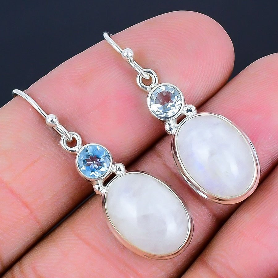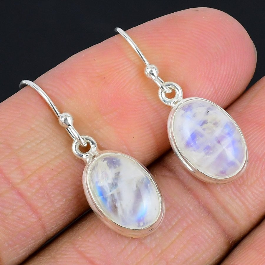 Natural Rainbow Moonstone Hook Sister Dangle Daughter Gift Earrings Solid Silver