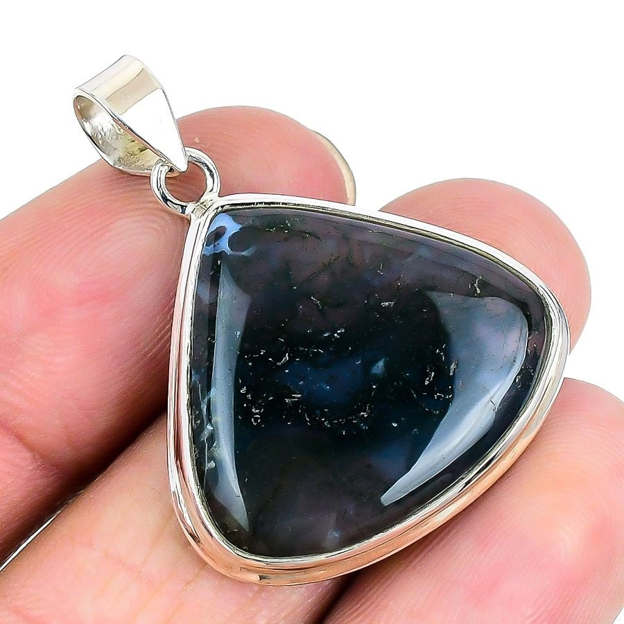 Green Moss Agate Gemstone 925 Sterling Silver Bezel Engagement Birthday Pendant