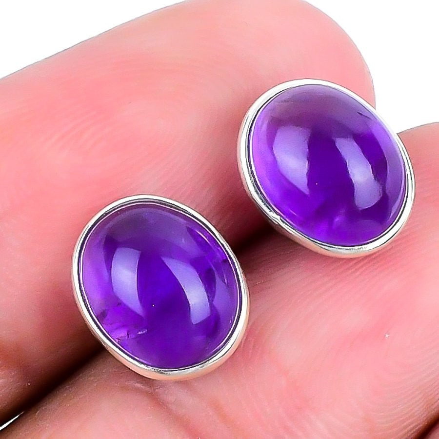 Crown Chakra Sage Amethyst Gemstone Solid Sterling Silver Stud Earrings Jewelry
