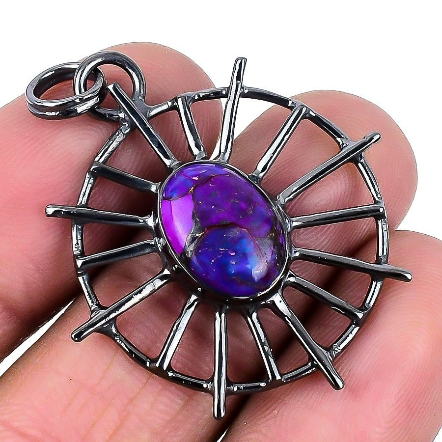 Copper Purple Turquoise Gemstone 925 Sterling Silver Wedding Engagement Pendant
