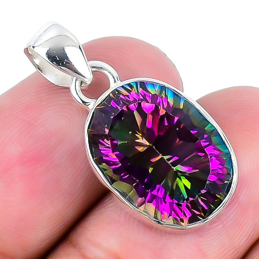 Mystic Rainbow Topaz Gemstone 925Ā SolidĀ Silver Trendy Artisan Wife New Pendant