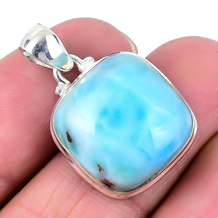 Natural Republic Larimar 925 Sterling Silver Sister Channel Set Pendant Jewelry