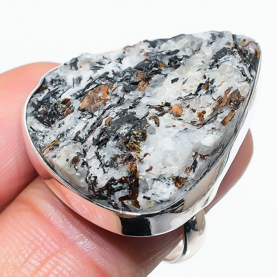 Natural Seraphinite Sterling Silver Daughter Unique Statement Ring Jewelry US 8