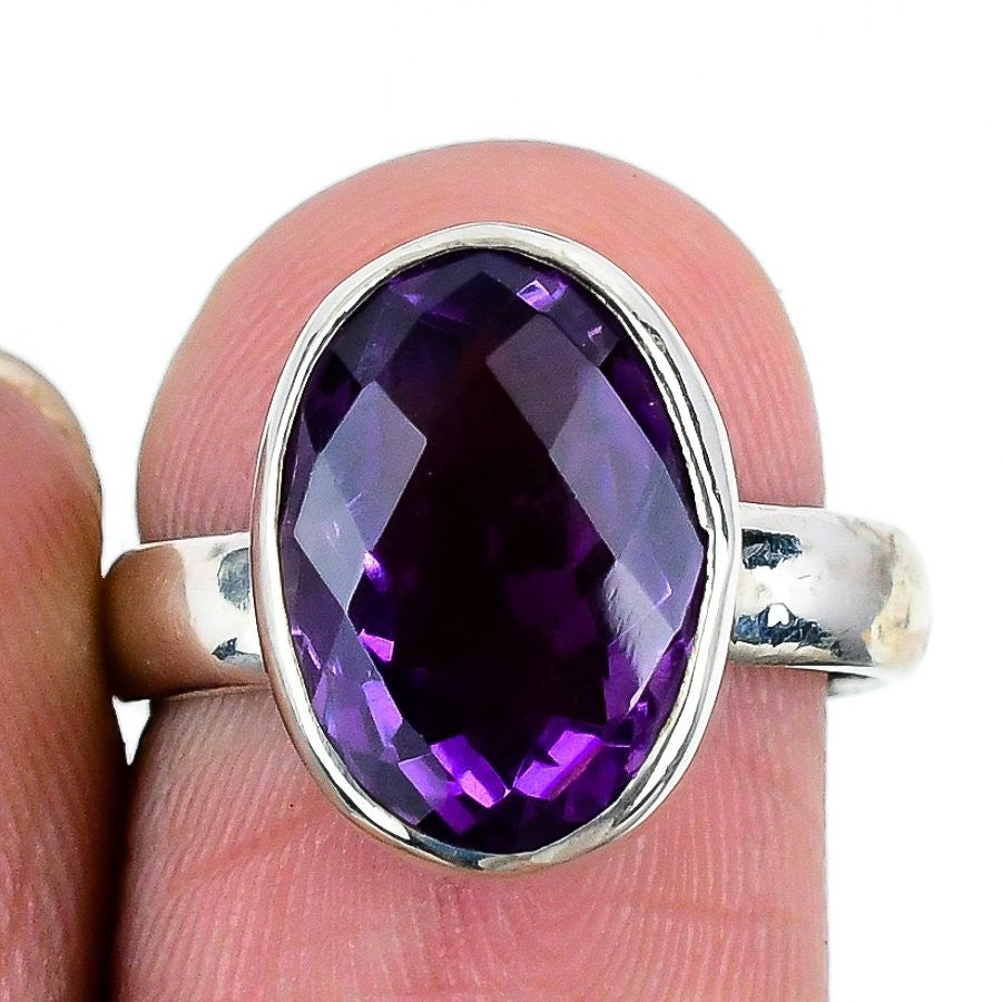 Amethyst Stone 925Ā SolidĀ Silver Mother Statement Birthday Ring Jewelry Size 7
