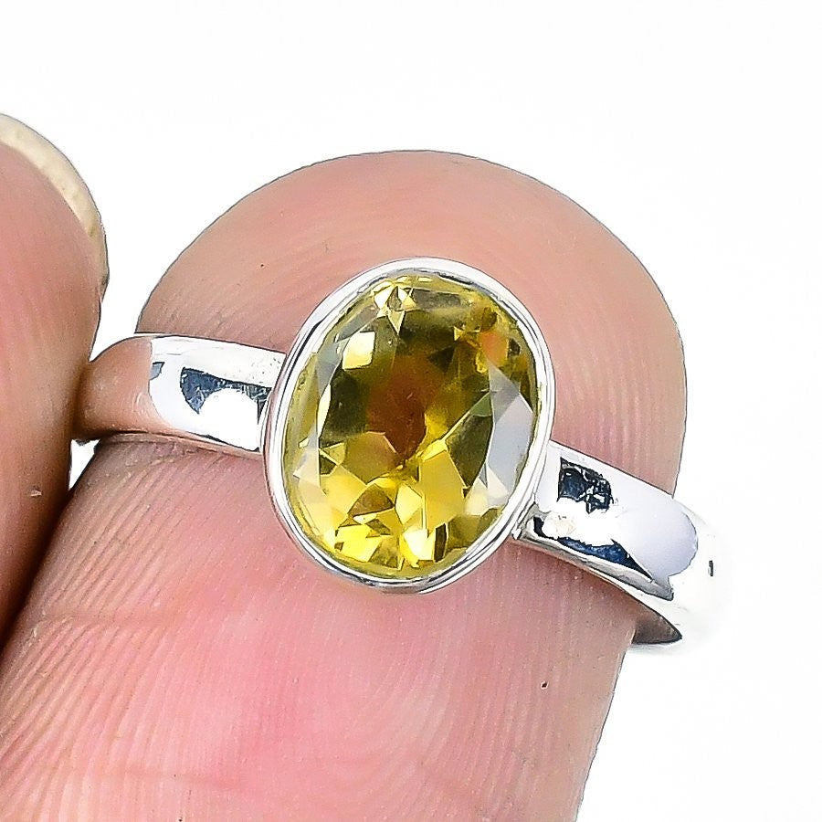 Citrine Faceted Stone Solid Silver Engagement New Statement Handmade Ring US 7.5