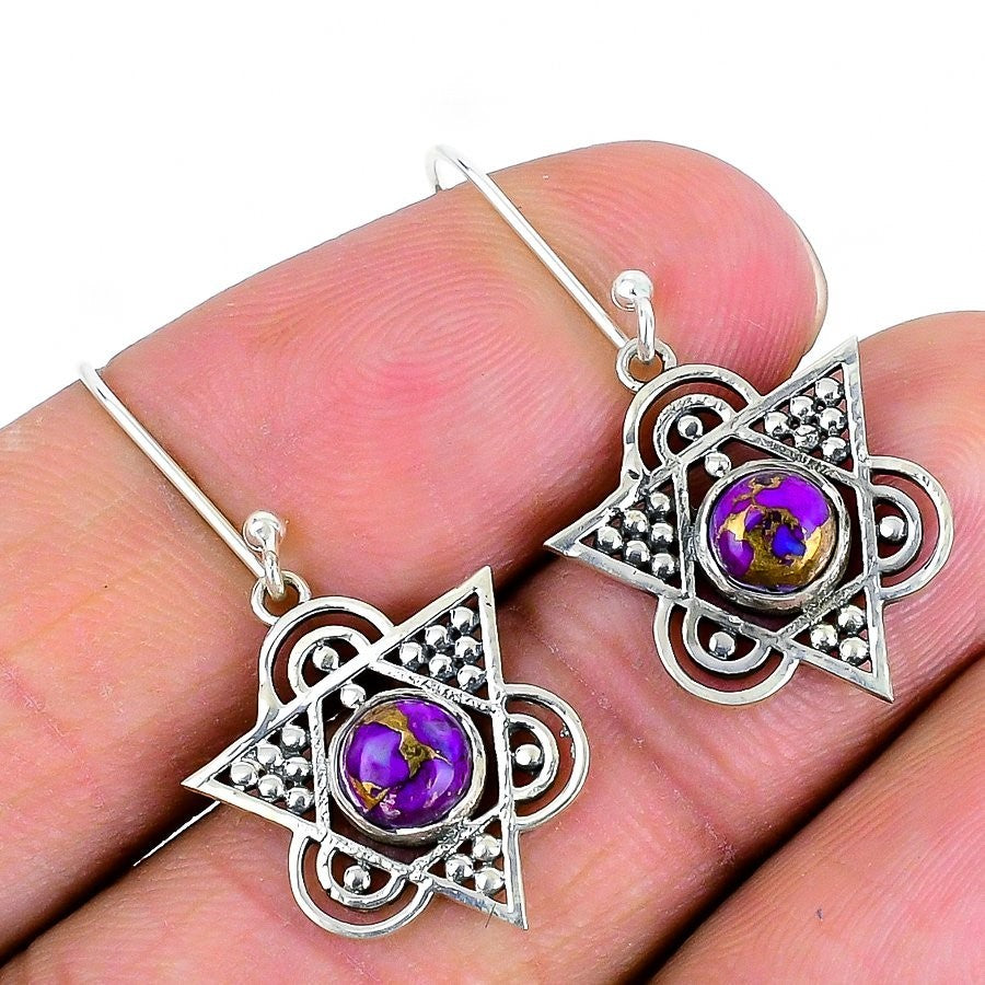 Copper Purple Turquoise Gemstone Dangle Earrings Jewelry Solid Sterling Silver