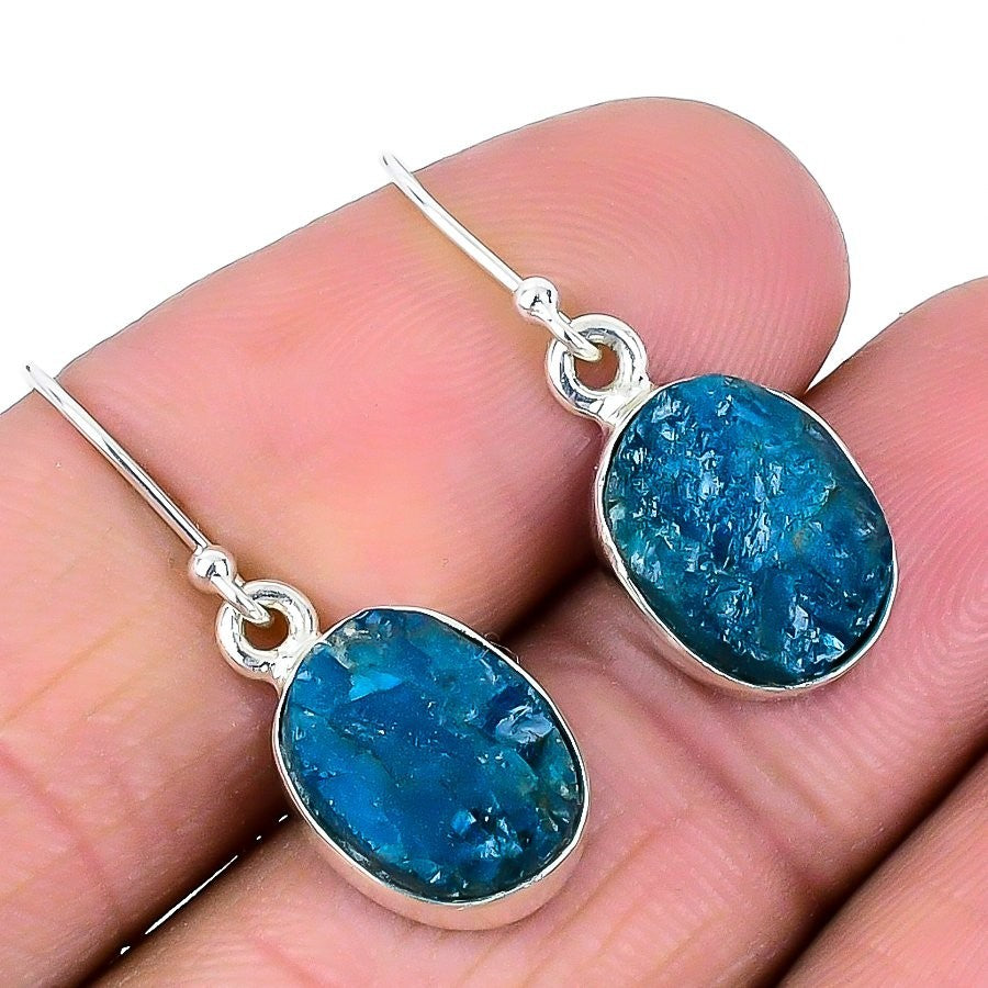 Blue Apatite Gemstone 925Ā SolidĀ Silver Dangle Throat Chakra Daughter Earrings