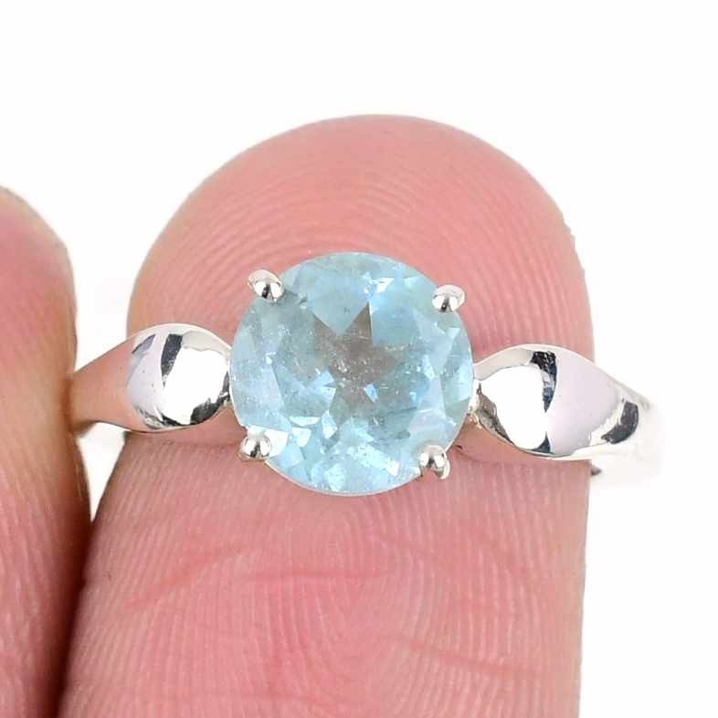 Natural Swiss Blue topaz Solid Silver Mother Engagement Cluster Ring Size 5.5