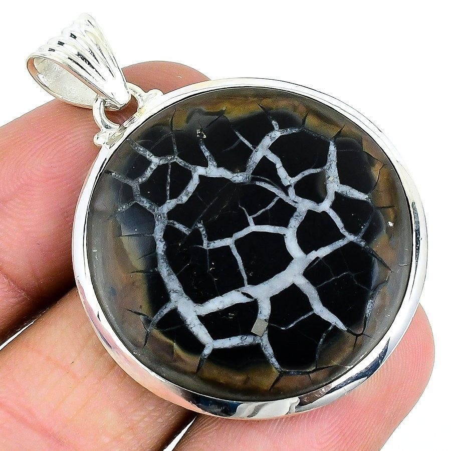 Natural Septarian Gronuts Sterling Silver Wedding Mother Birthday Bezel Pendant