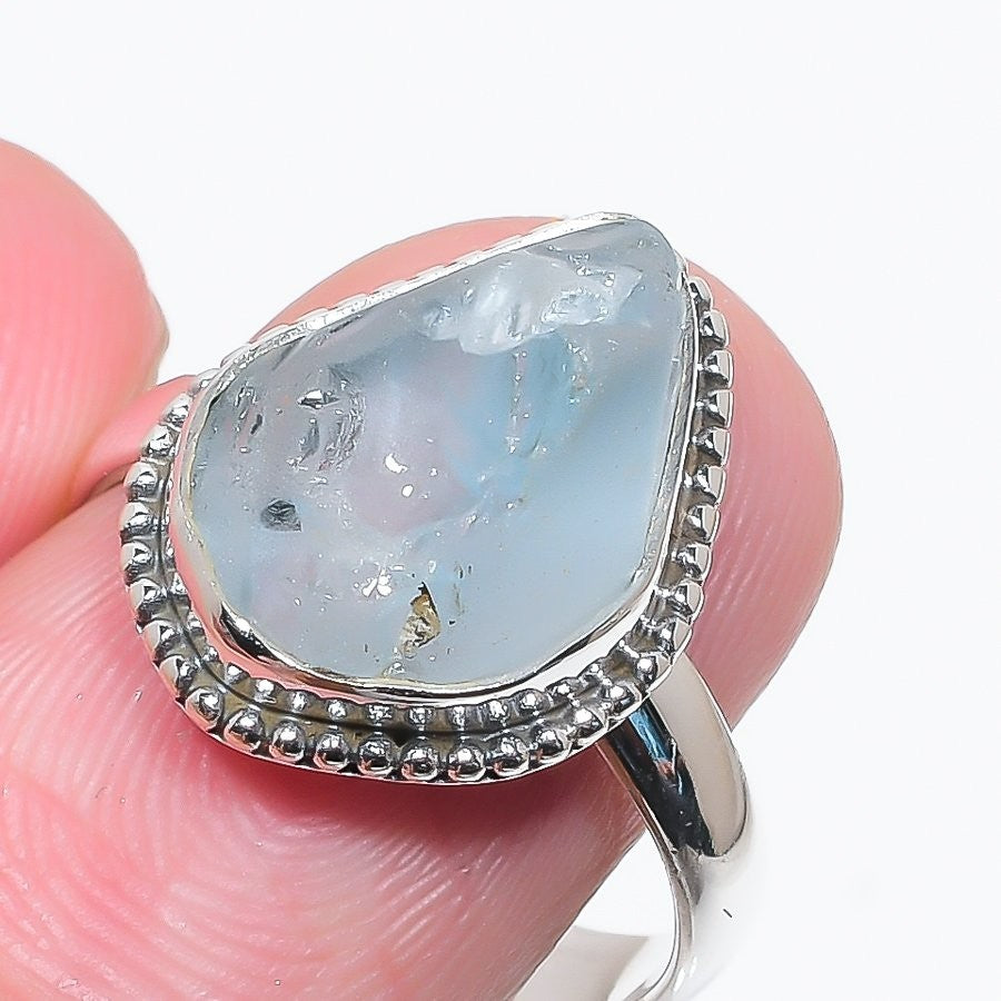 Natural Aquamarine Solid Silver Statement Wedding Engagement Ring Jewelry US 9.5