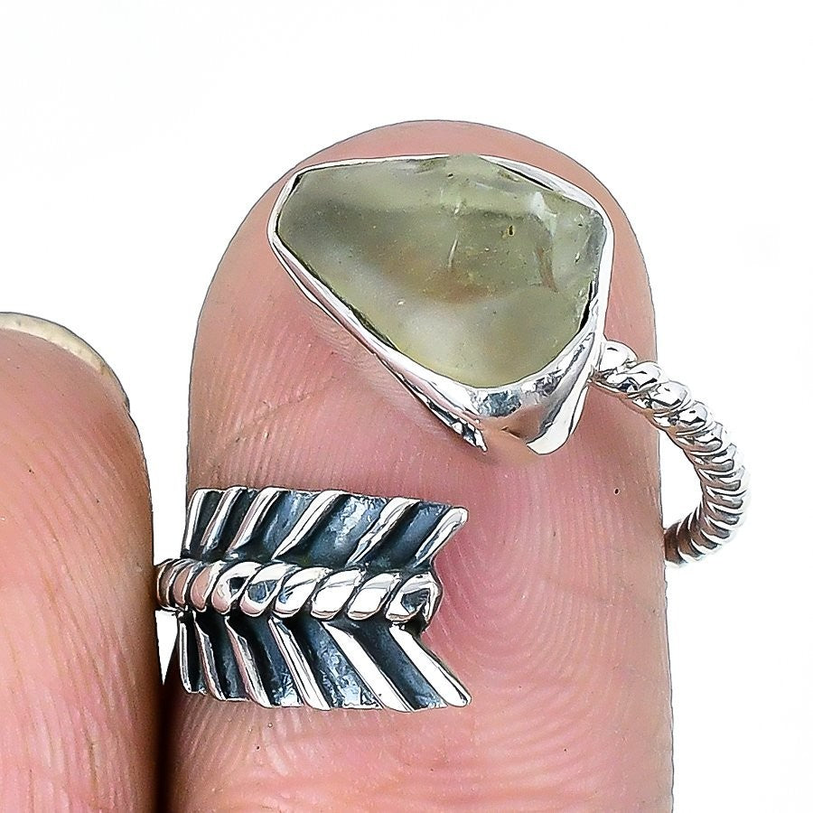 Natural Libyan Glass Solid Sterling Silver Daughter Statement Wedding Ring US 7