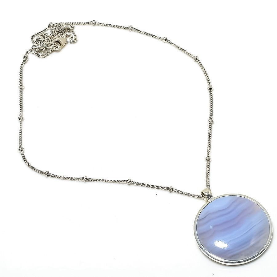 Natural Blue Lace Wife Anniversary Boho New Chain Necklace 925 Sterling Silver