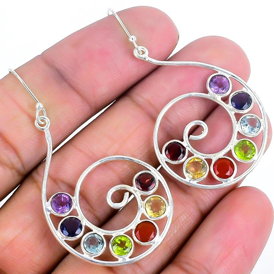 Natural Seven Chakra Drop Dangle Mother New Earrings Jewelry 925 Sterling Silver
