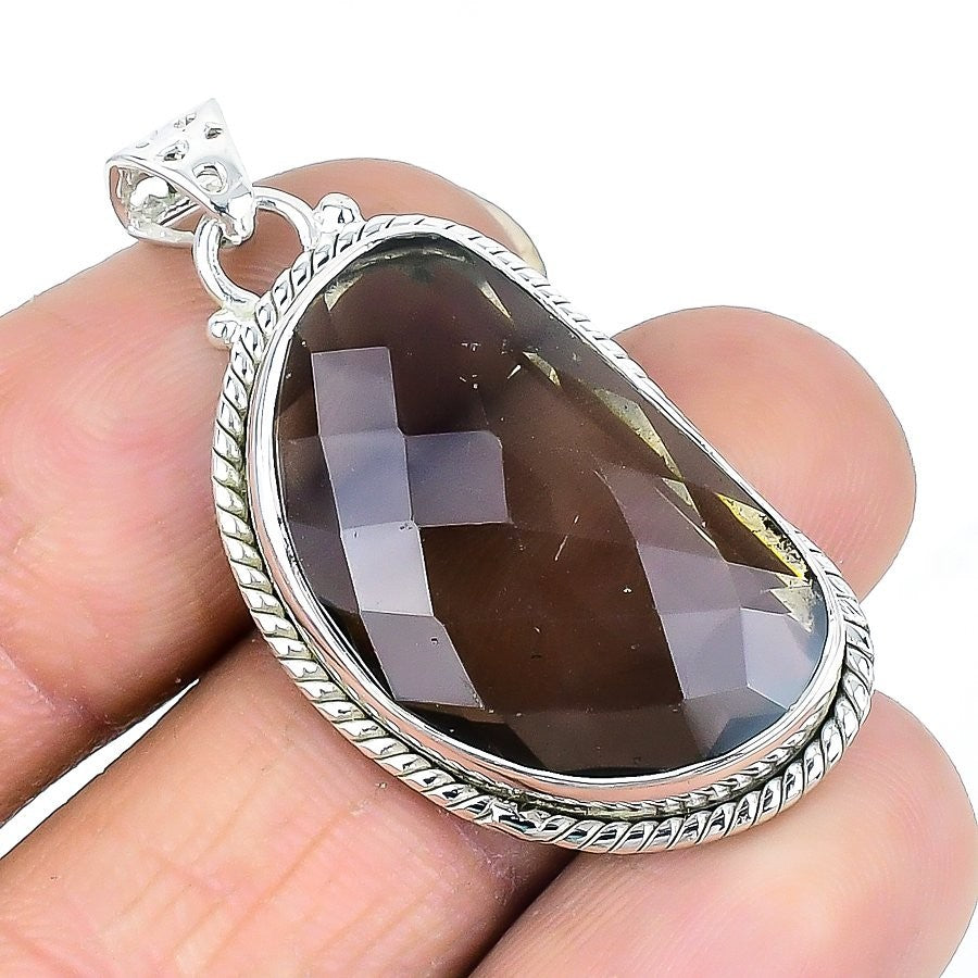 Smoky Topaz Stone Daughters Day Artisan Pendant Jewelry Solid Sterling Silver