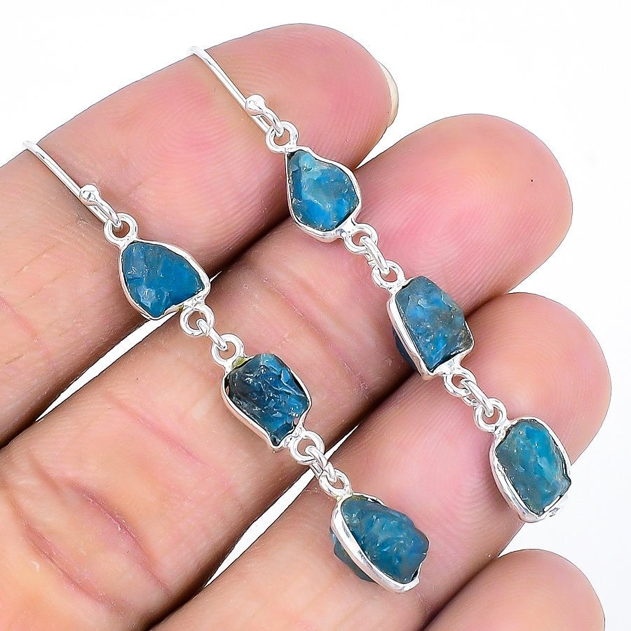 Apatite Druzy Gemstone New Drop Dangle Daughter Gift Earrings Jewelry 925 Silver
