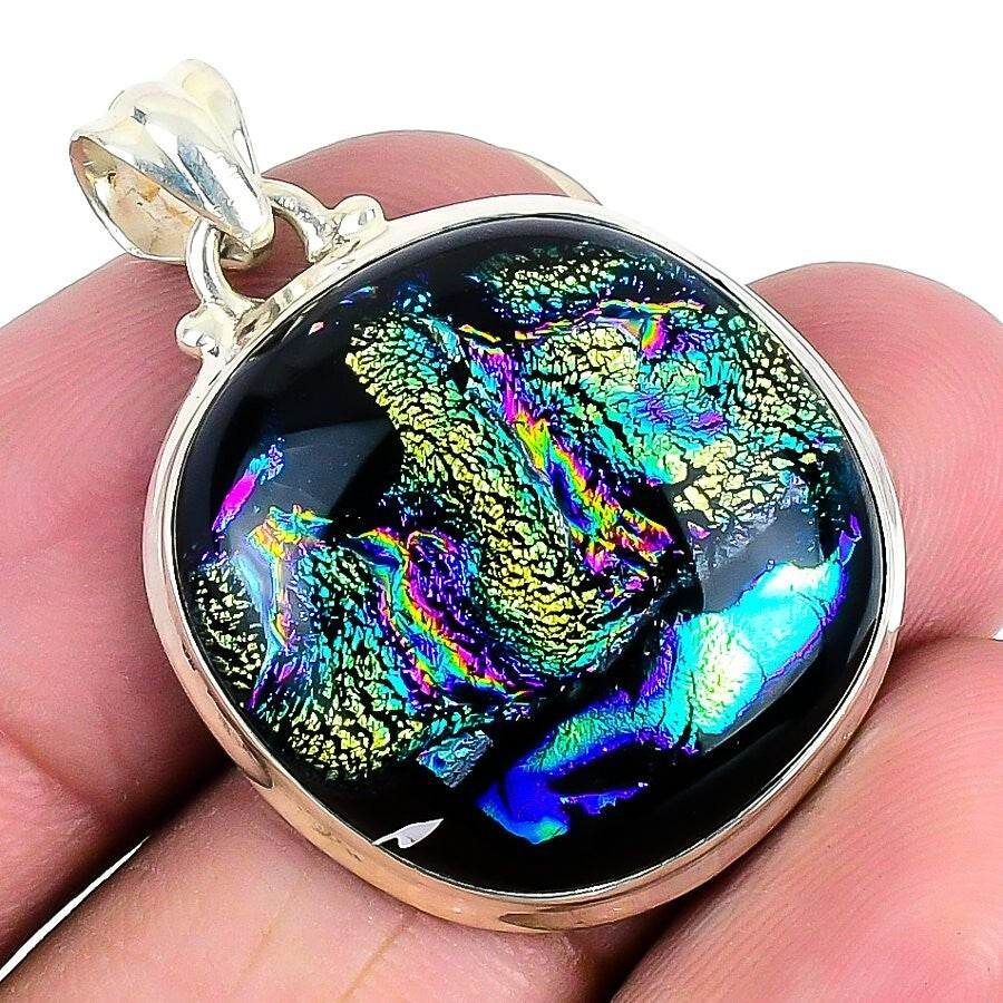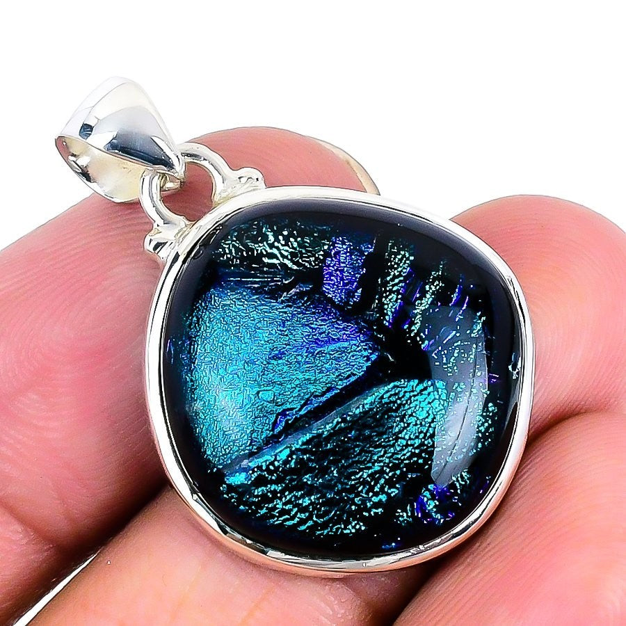 Mexican Dico Glass Gemstone Sterling Silver Bezel Wedding Trendy Pendant Jewelry
