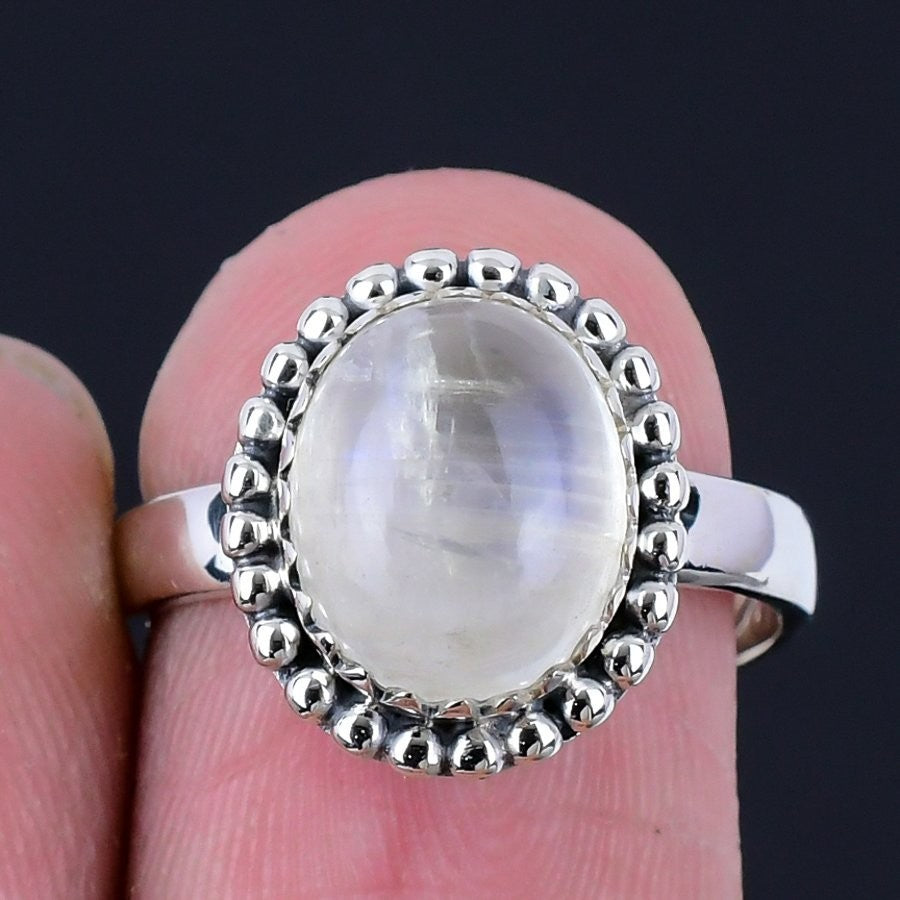 Daughters Day Sale Rainbow Moonstone Gemstone Solid Silver Cluster Ring Jewelry