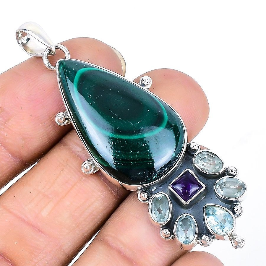 Malachite Gemstone Sterling Silver Heart Chakra Daughter Wedding Pendant Jewelry