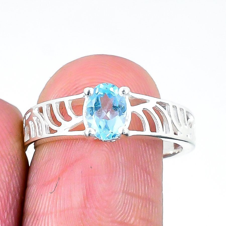 Daughters Day Deal Swiss Blue Topaz Stone Sterling Silver Band Ring Jewelry US 8