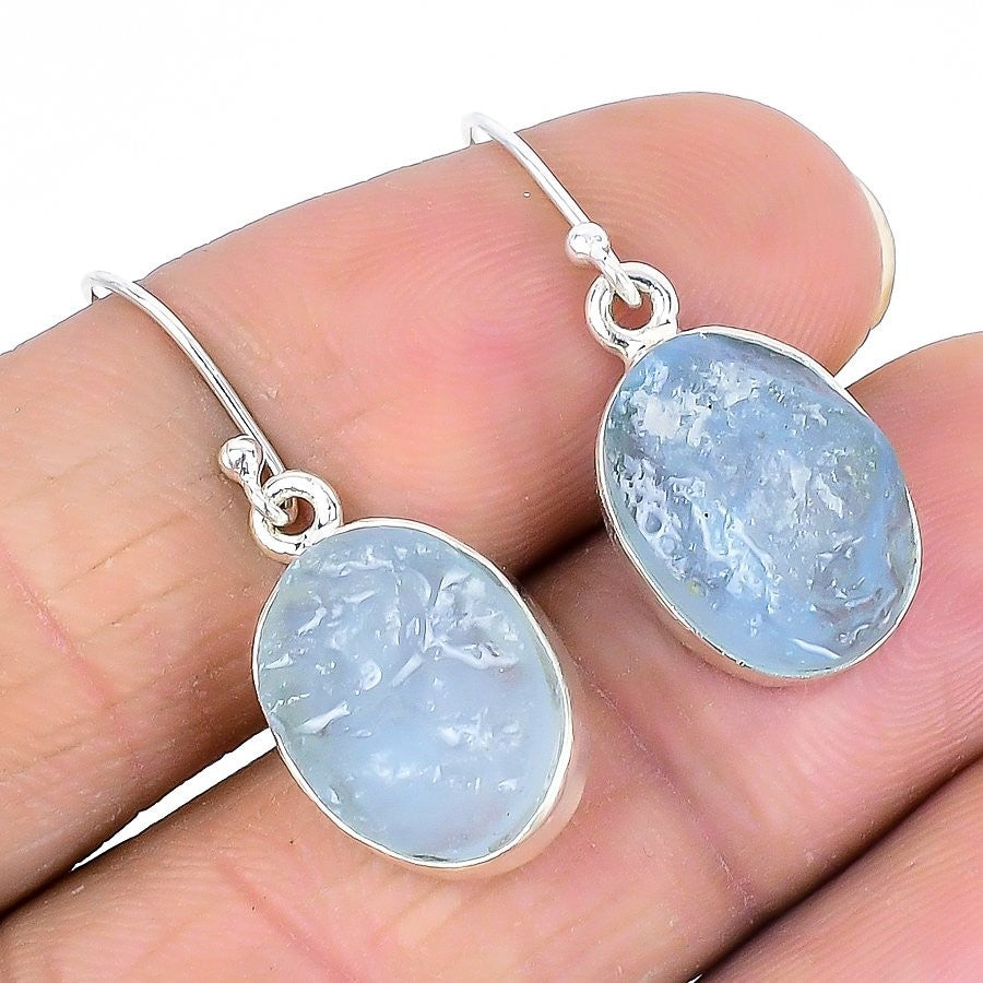 Natural Aquamarine Druzy Sterling Silver Drop Daughter Gift New Earrings Jewelry