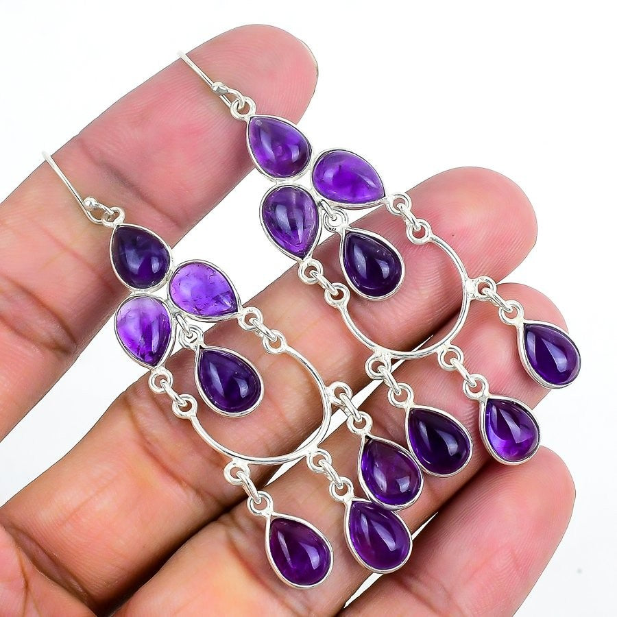 Sage Amethyst Gemstone Hook Drop Bezel Anniversary Earrings Jewelry 925 Silver
