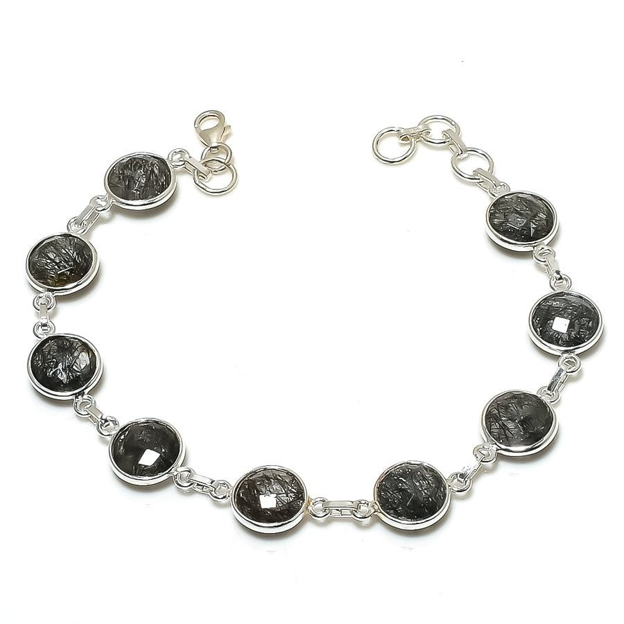 Black Rutile Gemstone 925 Silver Chain Artisan Anniversary Wife Bracelet Jewelry