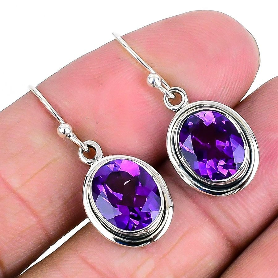 Amethyst Stone Solid Sterling Silver Wife Drop Art Deco Hook Engagement Earrings