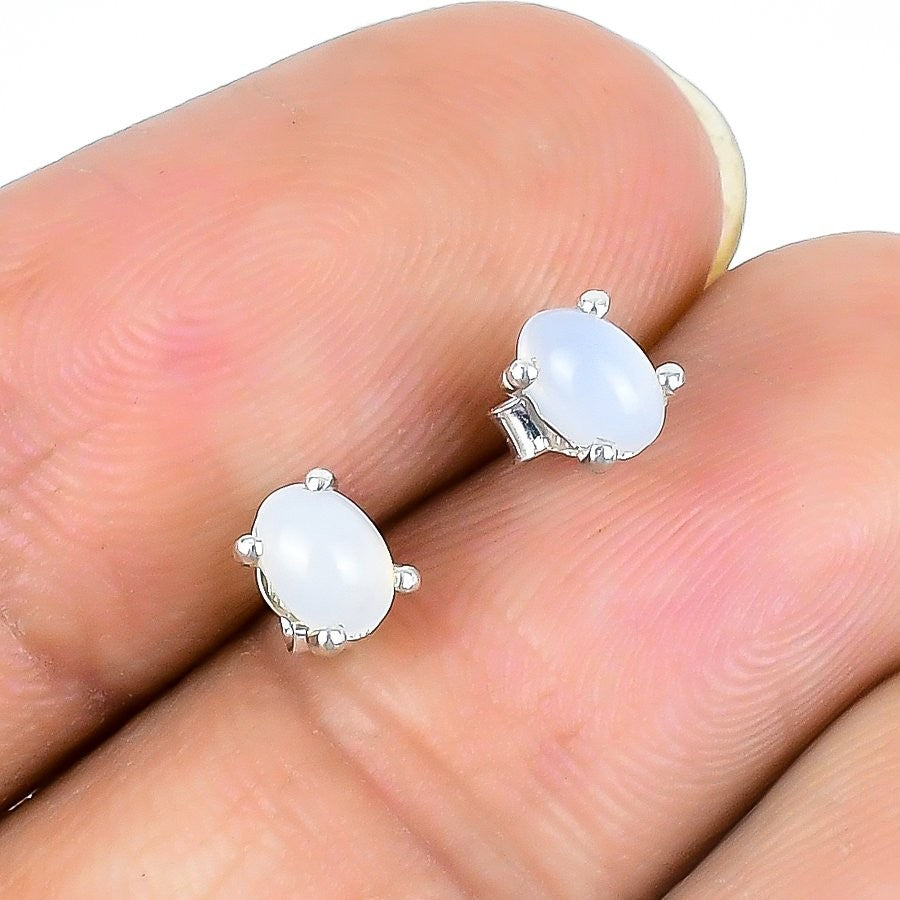 Crown Chakra Rainbow Moonstone Stone Wedding Stud Post Earrings 925Ā SolidĀ Silver