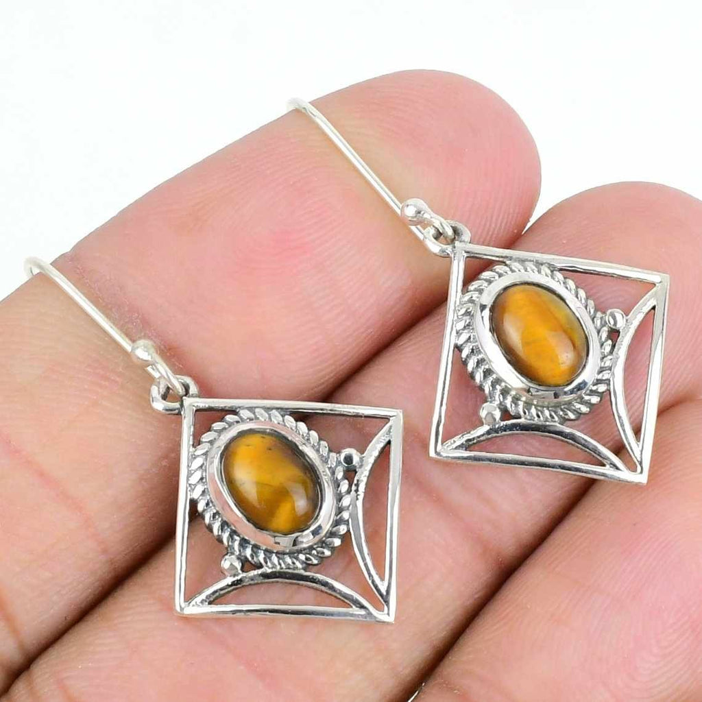 Tiger Eye Stone Sterling Silver Wedding Drop Daughter Gift Artisan Boho Earrings