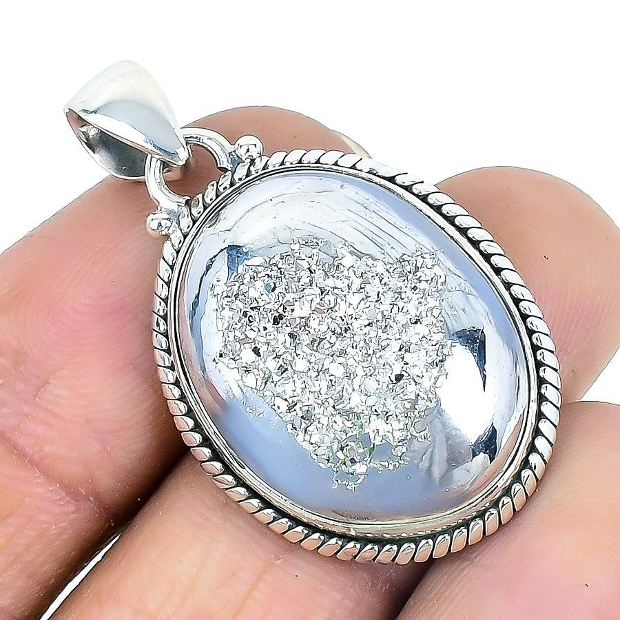 Titanium Druzy Gemstone 925 Silver Daughter Gift New Wife Unique Pendant Jewelry