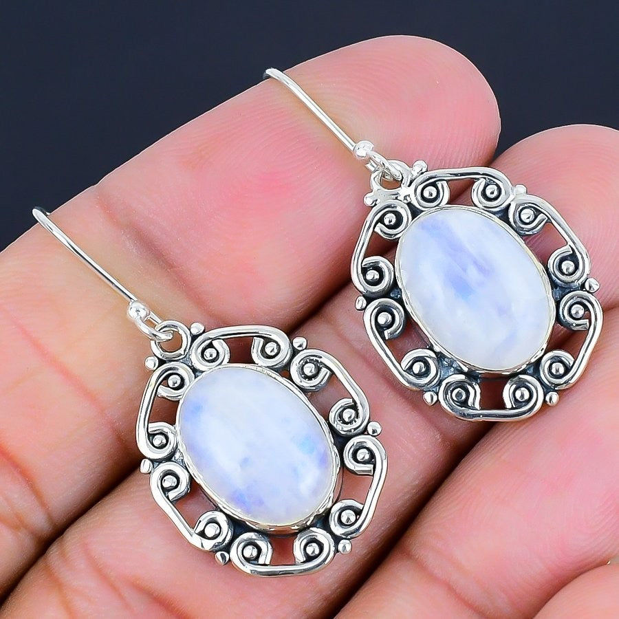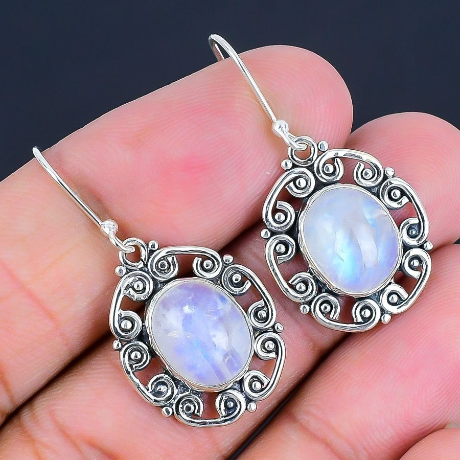 Rainbow Moonstone Gemstone 925Ā SolidĀ Silver Artisan Wife Dangle Earrings Jewelry