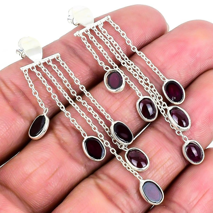 garnet Gemstone 925 Silver Daughter Hook January Dangle Drop Wedding Earrings