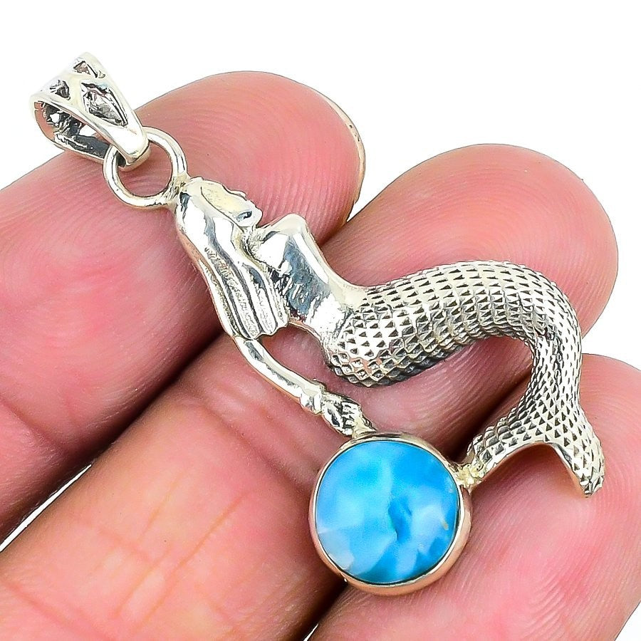 Natural Republic Larimar Mother Handmade New Pendant Jewelry 925 Sterling Silver