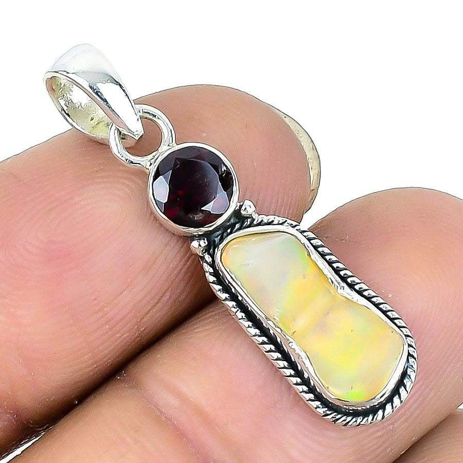 Ethiopian Opal Gemstone Solid Silver Artisan Birthday Daughter Gift Wife Pendant