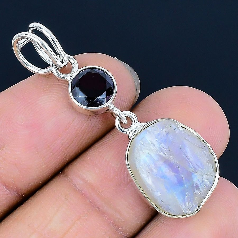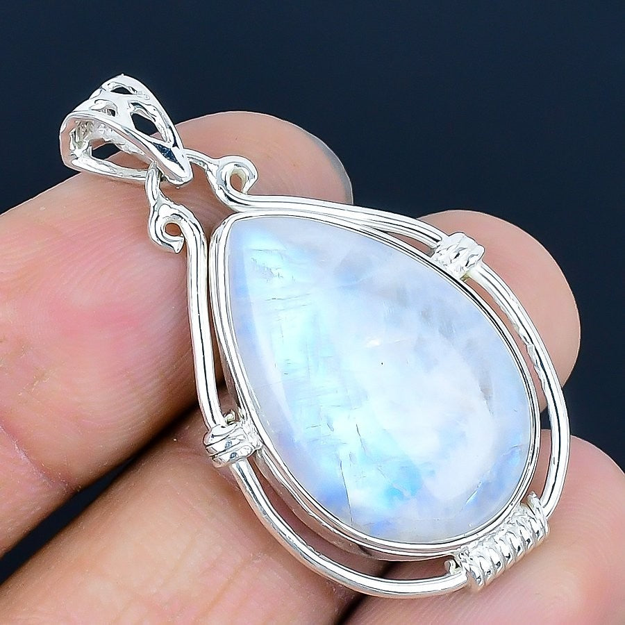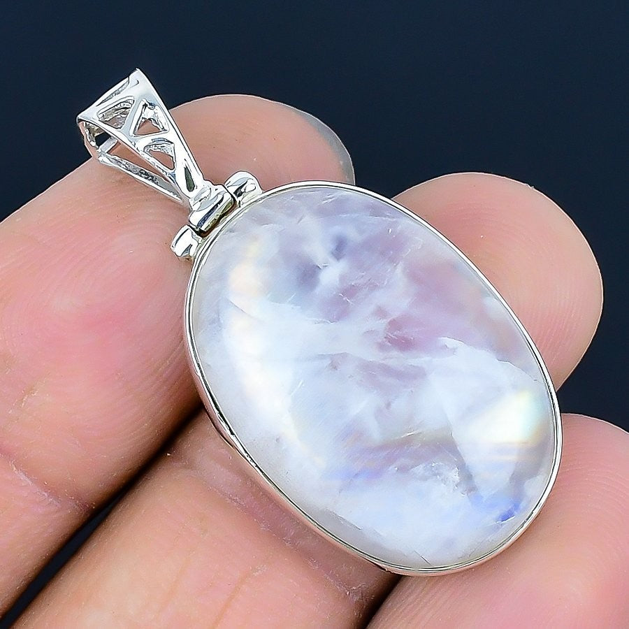 Rainbow Moonstone Gemstone Sterling Silver Elegant Ethnic Boho Pendant Jewelry