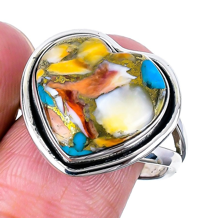 Spiny Oyster Turquoise Heart Stone 925Ā SolidĀ Silver New Statement Ring Jewelry